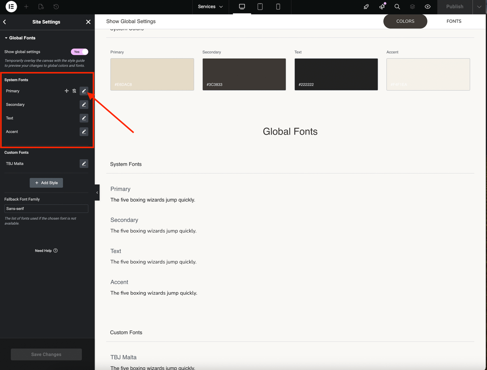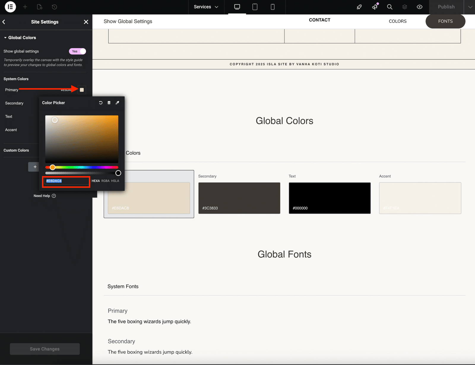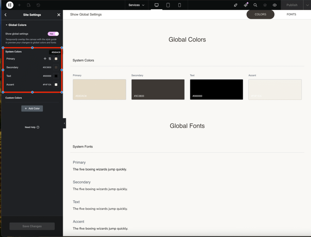 This tutorial will guide you through updating the global colors and fonts for your Elementor theme.