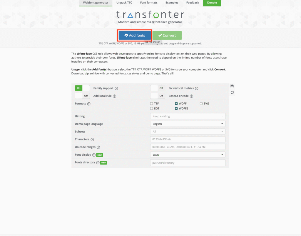 Open transfonter.org in your browser.