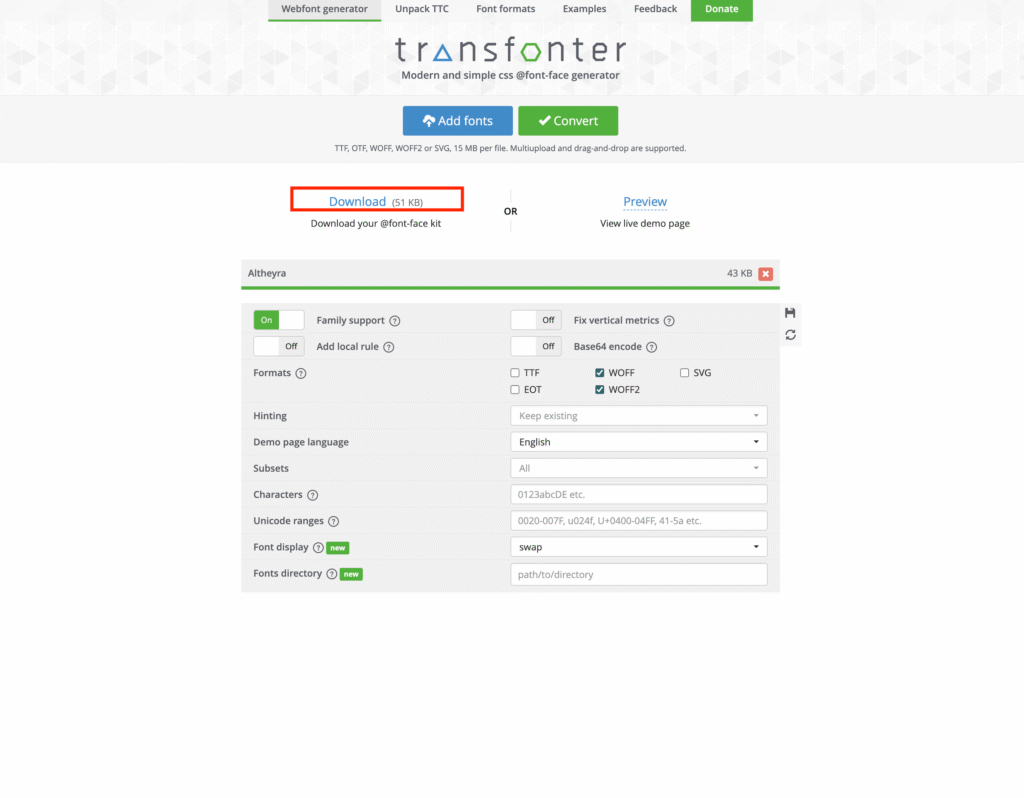 If your custom font isn’t already in .woff or .woff2 format, you’ll need to convert it before uploading to your website. Here’s how: