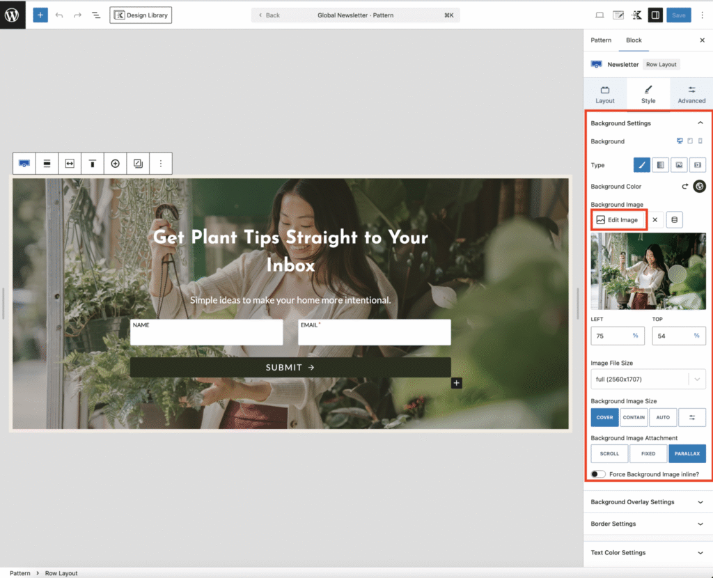To change the Form Image Background Click on the form’s background image. In the right-hand sidebar, go to the Style tab