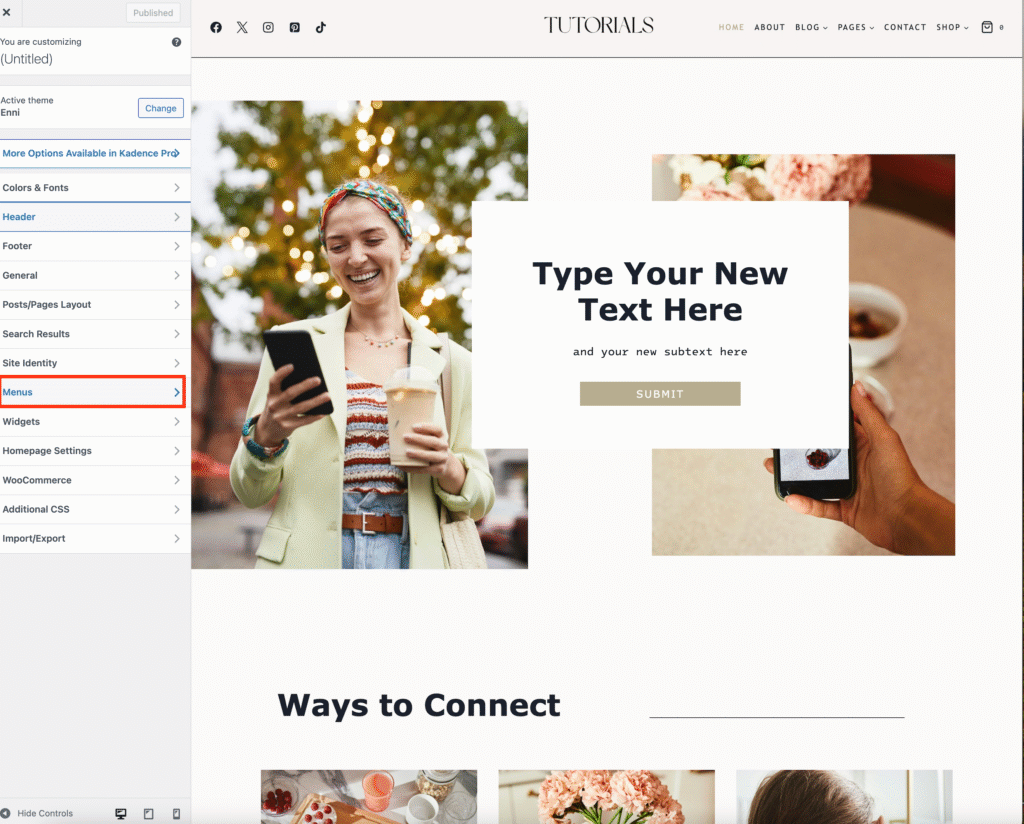Open the Customizer: Go to your WordPress dashboard → Appearance → Customizer.