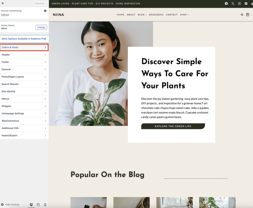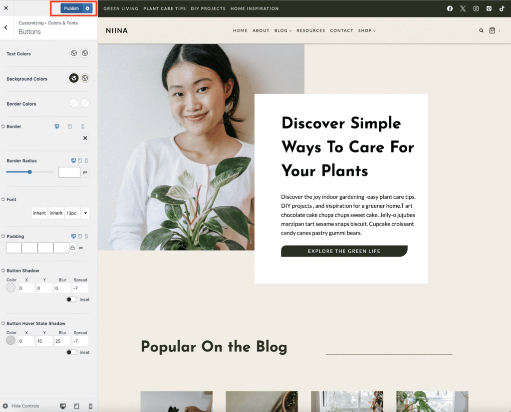 Play around with colors, fonts, and sizes until you find a style that suits your website.• Don’t forget to click Publish to save your changes.