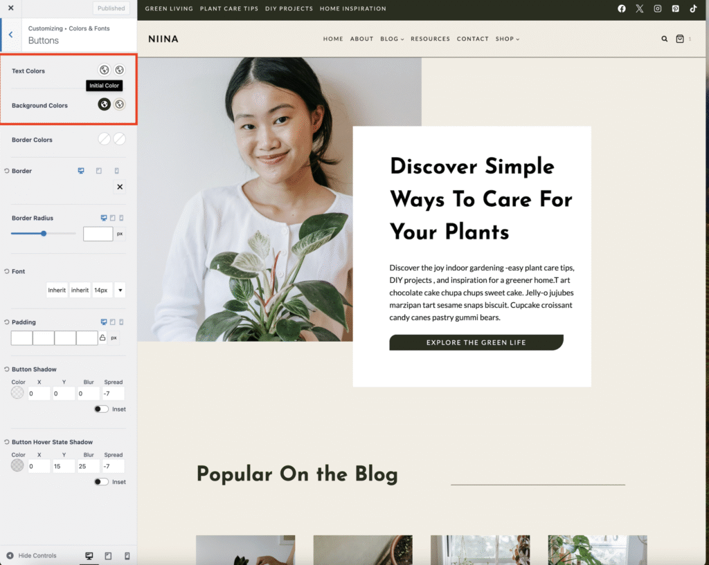 • Hover Text Color is next to the initial color: This changes the text color when a user hovers over the button.