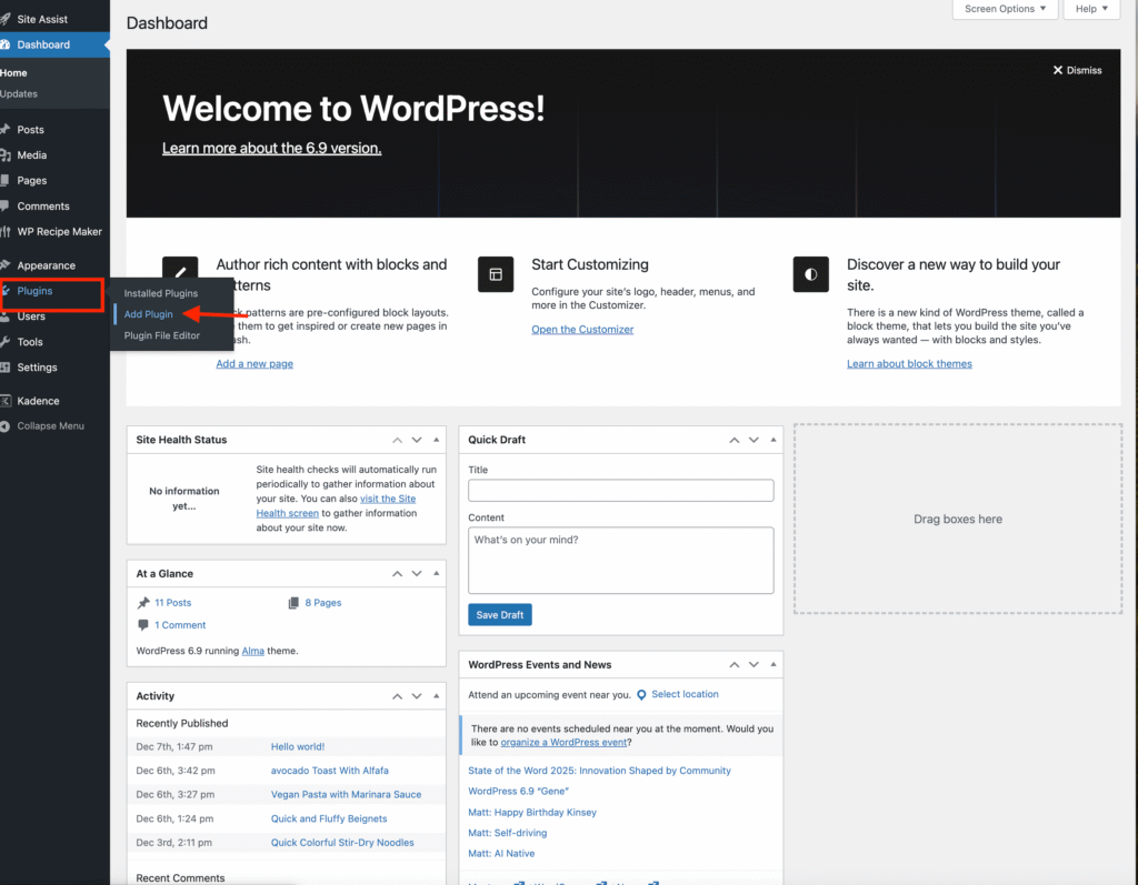 • In your WordPress dashboard, go to Plugins → Add Plugin.