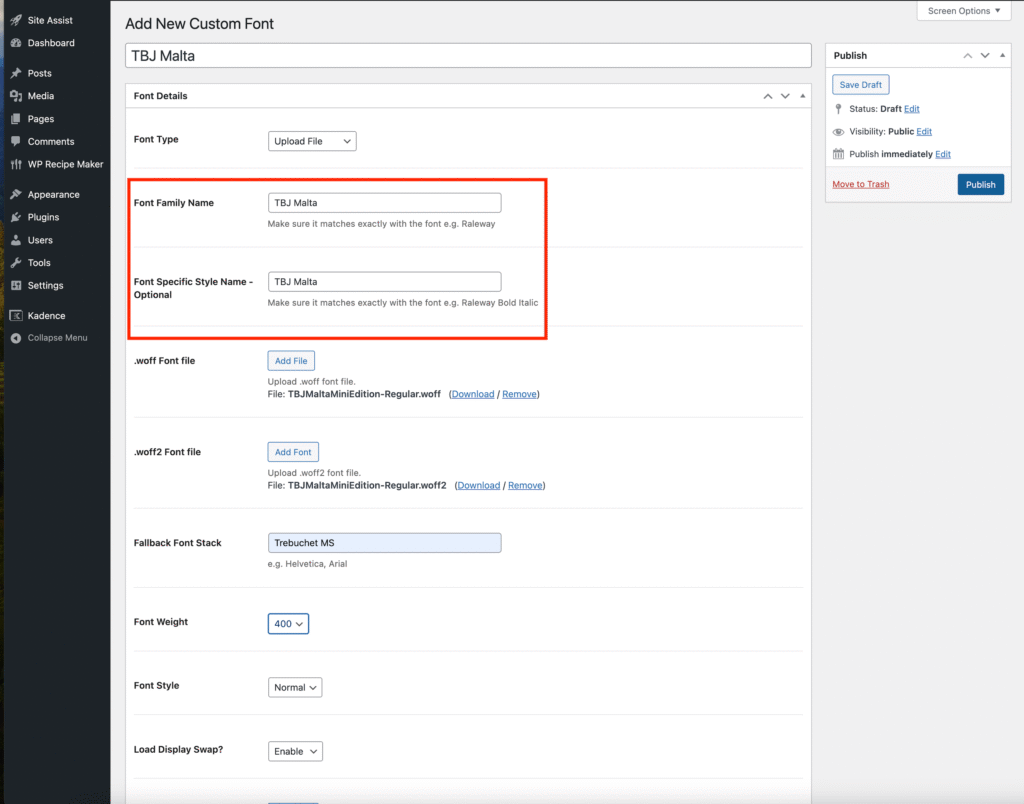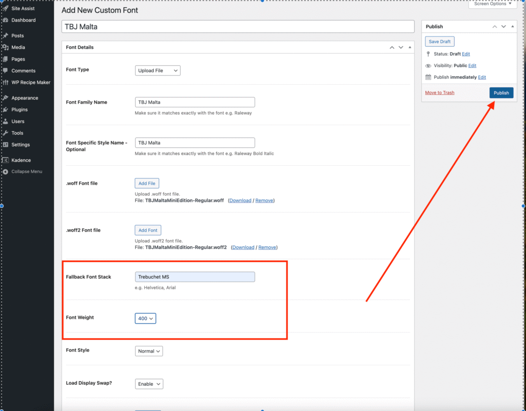 In the Fallback Font field, choose any Google Font you want your site to use if your custom font fails to load for any reason.