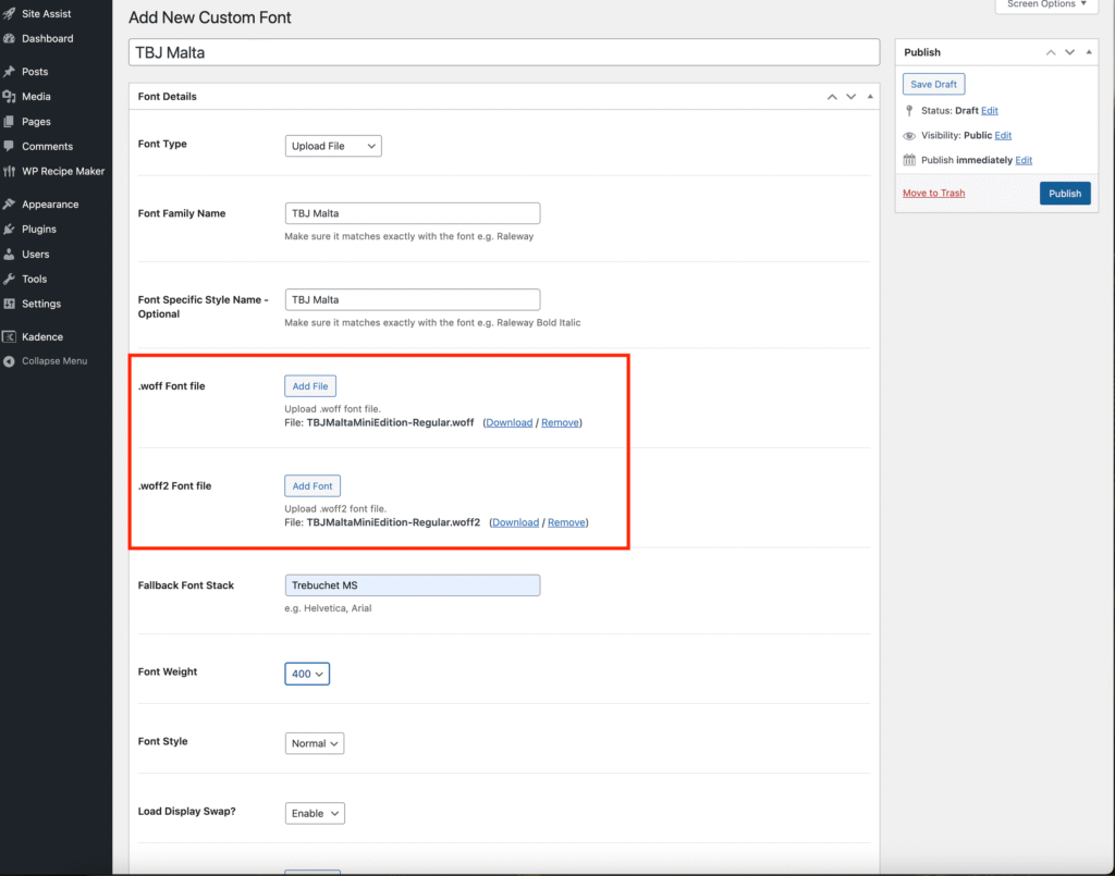 Your purchased font should include .woff and .woff2 files — these are the formats you’ll upload.